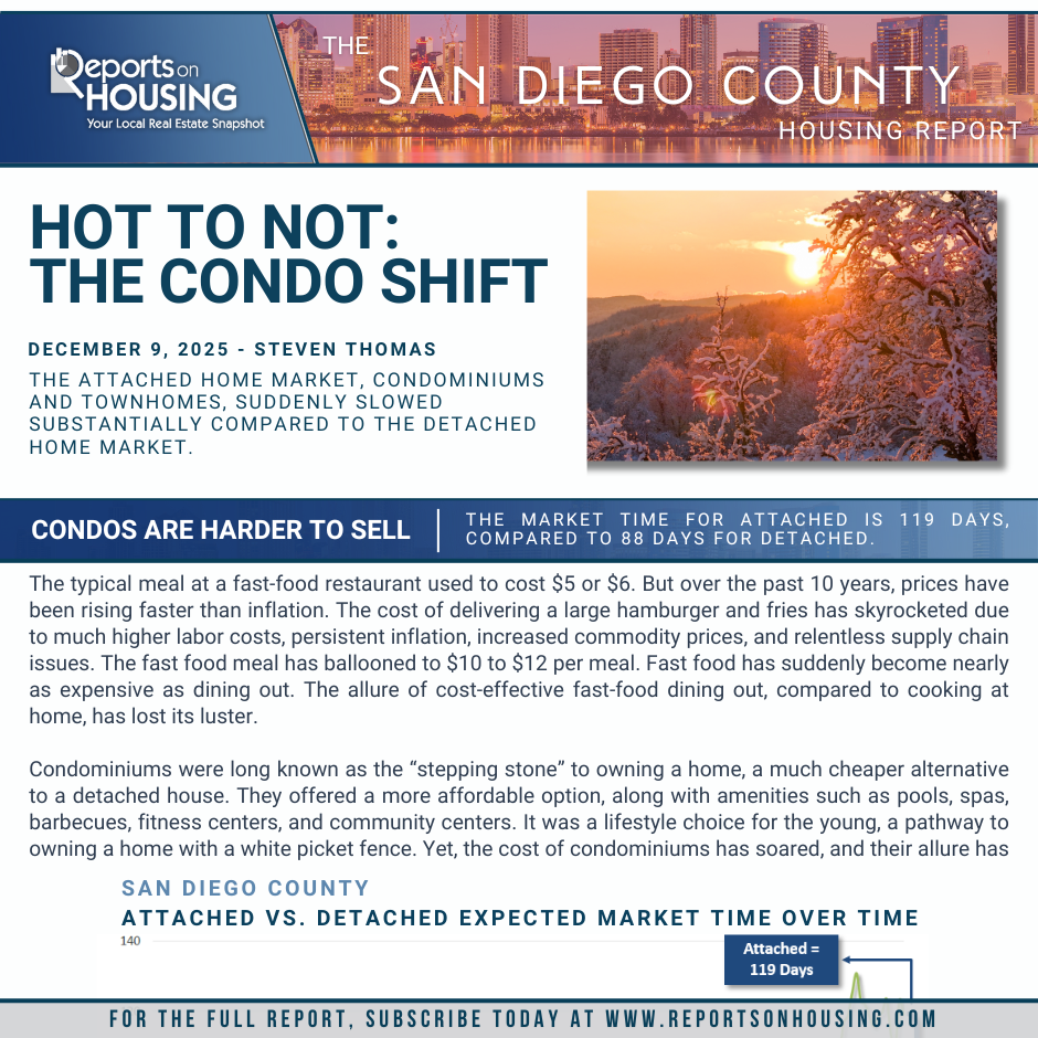 The San Diego Housing Report offers a real-time look at market conditions by tracking active listings, pending sales, inventory, and market pace. Subscribe to receive our full monthly analytics by email.